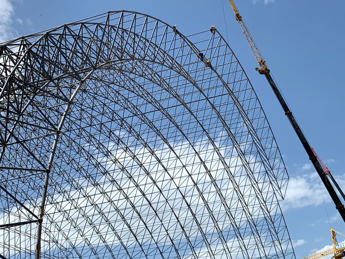 (2)网架加工前应对现场尺寸进行复测,确认无误后方可进行加工、安装;网架制作、运输、安装应遵守《空间网格结构技术规程》JGJ7-2010、《钢网架资阳螺栓球节点》JG/T 10-2009、《钢网架资阳螺栓球节点用高强度螺栓》 GB/T 16939-2016、《资阳钢结构资阳工程资阳施工规范》 GB50755-2012、《资阳钢结构资阳工程资阳施工质量验收标准》 GB50205-2020。
